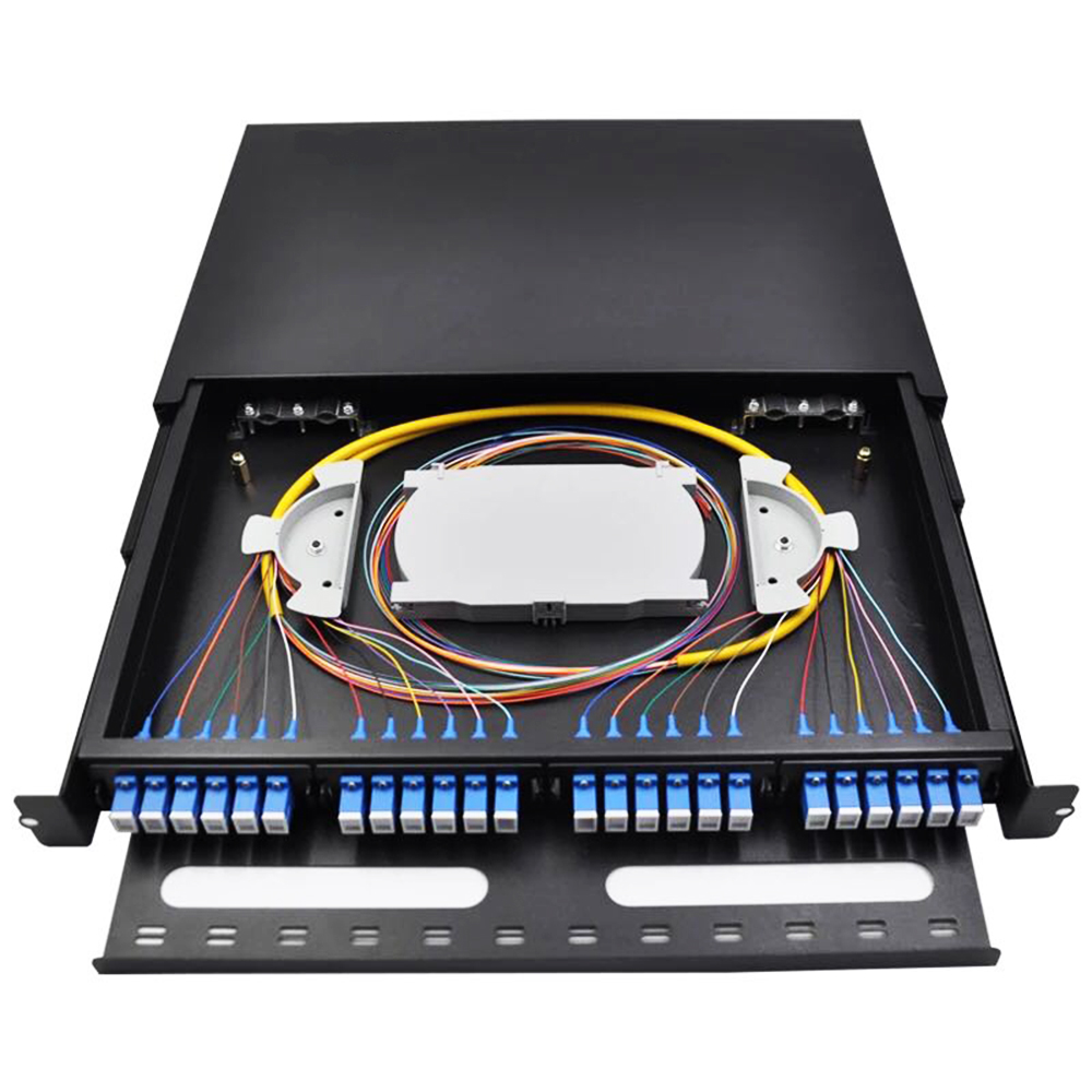 ODF-YZ24 is a 19’’ rack mounted fiber optic patch panel that made of cold-roll steel, with plastic splice tray inside, suitable for pigtail, ribbon and bunch cable distribution. And it has metal sliding fittings with self-locking functions prevent the drawer from falling when moved.